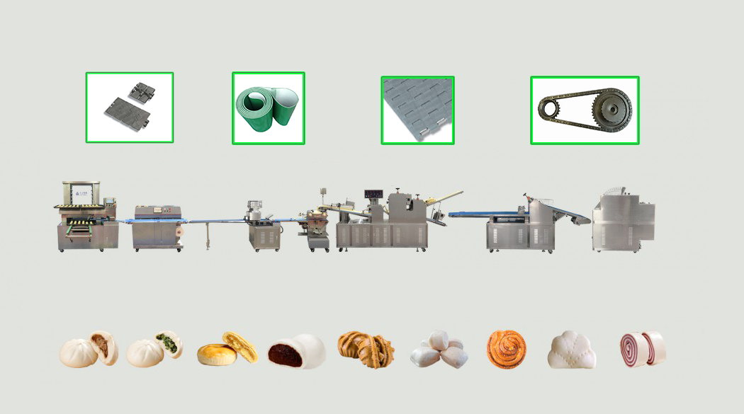 面包加工線   傳動(dòng)鏈  鏈輪  頂板鏈  網(wǎng)帶  輸送帶