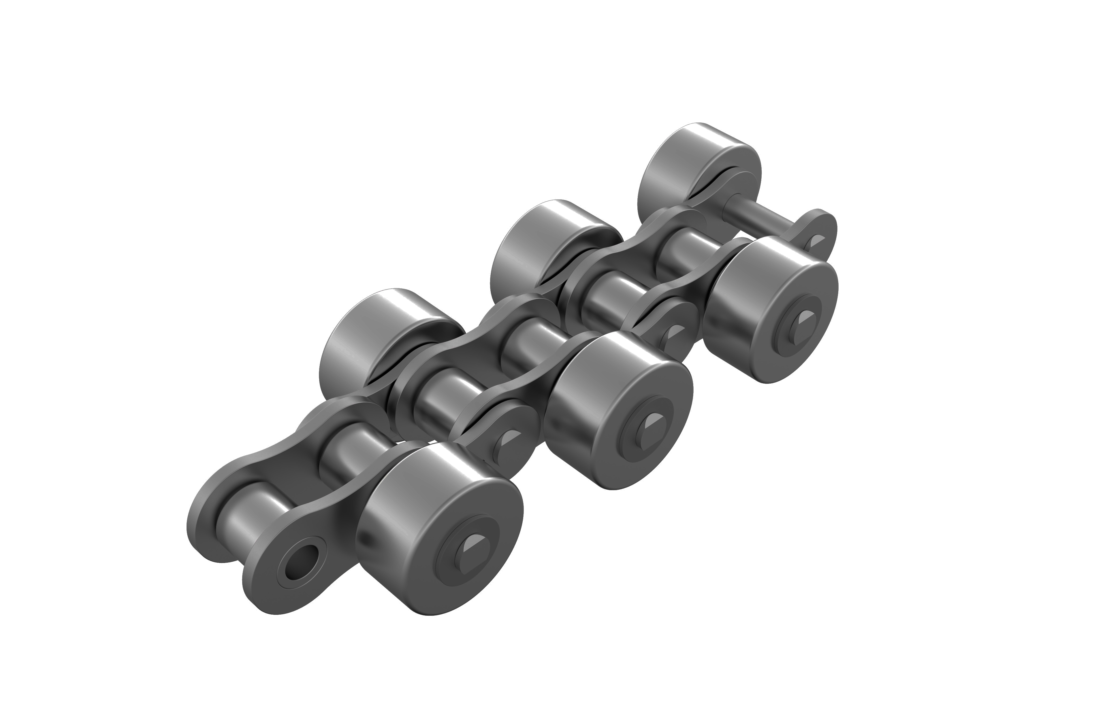 在運(yùn)行時(shí),鏈條通過(guò)中央的小滾子與鏈輪嚙合,依靠側(cè)置滾輪在軌道或支撐面上滾動(dòng),由于側(cè)置滾輪的存在,鏈條在運(yùn)行過(guò)程中可以更好地保持直線度和平穩(wěn)性,同時(shí)也能降低產(chǎn)生的噪音。