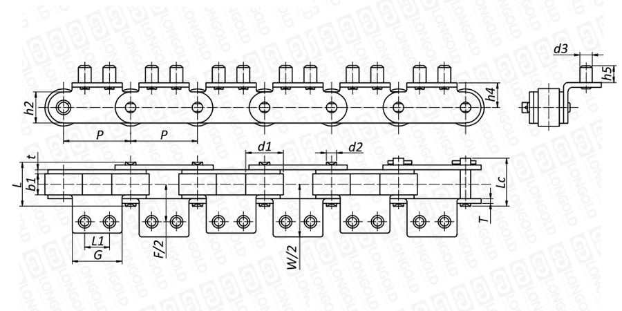 附件是為了將夾具安裝在鏈條上的零部件??筛鶕?jù)客戶要求設(shè)定安裝間隔。