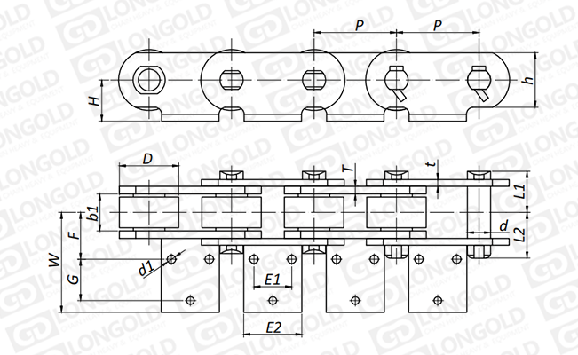 附件可配裝在每一個鏈節(jié)以上的鏈節(jié)間隔,如每偶數(shù)鏈節(jié)安裝,為了容易進行保養(yǎng),安裝在外鏈節(jié)。