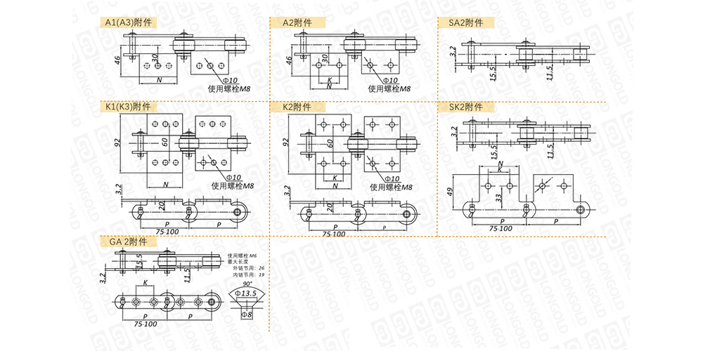 ■鏈條本體結(jié)構(gòu)及附見(jiàn)種類(lèi)詳見(jiàn)如上圖