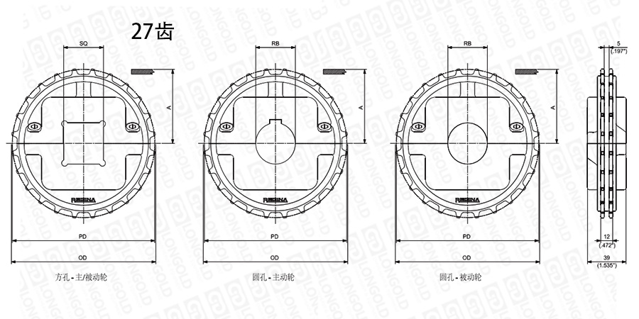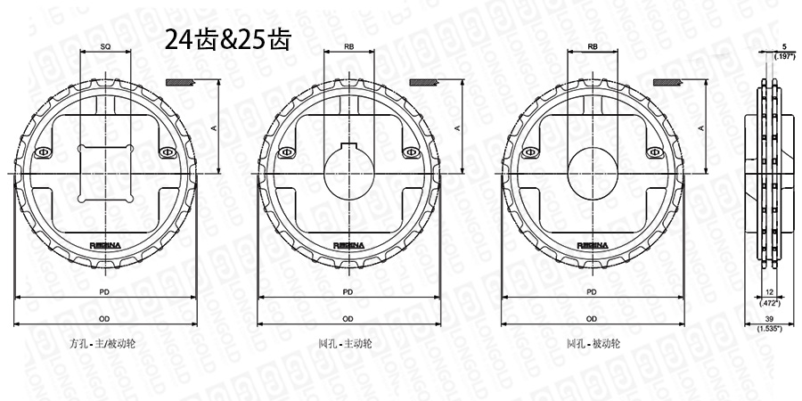1.圓孔鏈輪表示直徑,方孔鏈輪表示邊長。