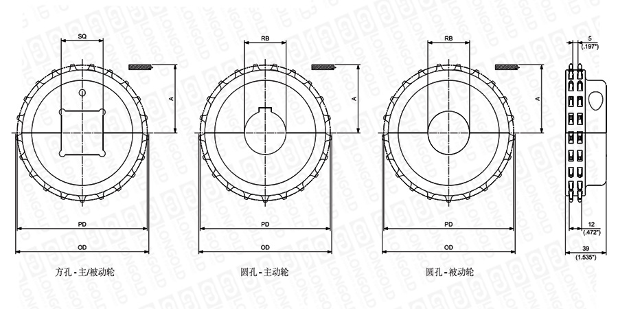 1.圓孔鏈輪表示直徑,方孔鏈輪表示邊長(zhǎng)。