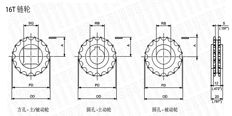 1.圓孔鏈輪表示直徑,方孔鏈輪表示邊長。