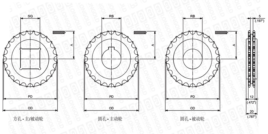 1.圓孔鏈輪表示直徑,方孔鏈輪表示邊長(zhǎng)。