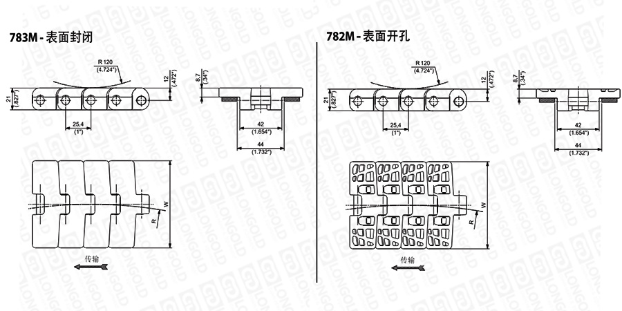 1"節(jié)距轉(zhuǎn)彎鏈板 783M與782M系列