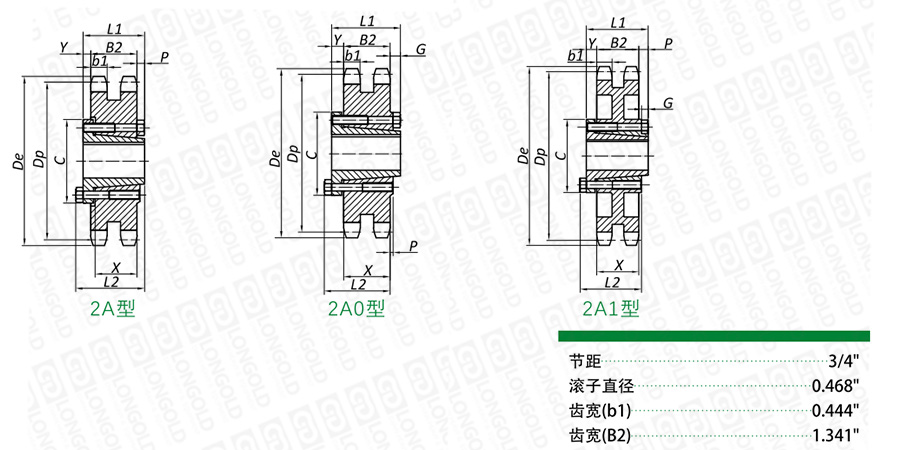 ■雙排A0型鏈輪尺寸表