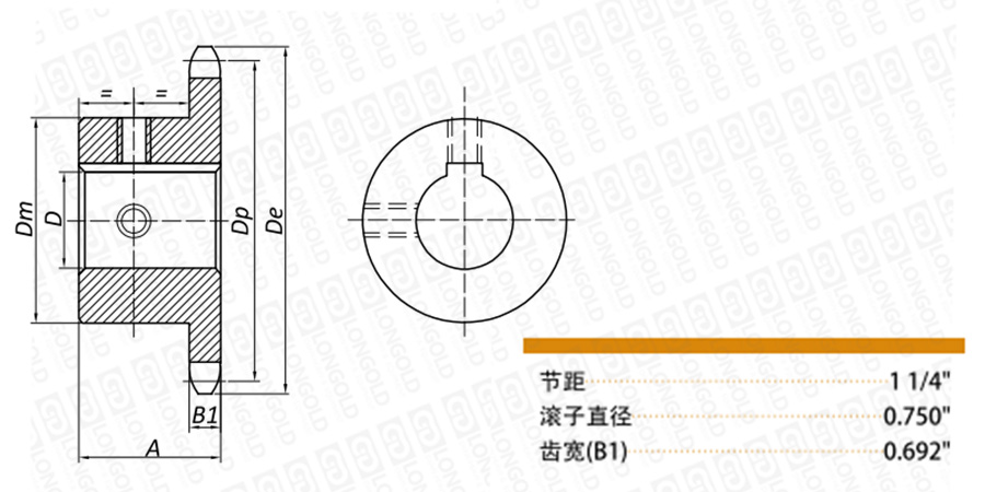 成品孔鏈輪,安裝(聯(lián)結(jié))后無(wú)背隙,由于采用軸向固定,不需要“防止脫落具”,定位準(zhǔn)確,鏈輪孔已經(jīng)加工完成,可直接安裝使用,100-1鏈輪,配用LD100-1單排鏈條。