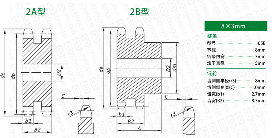 雙排B型鏈輪型號(hào)