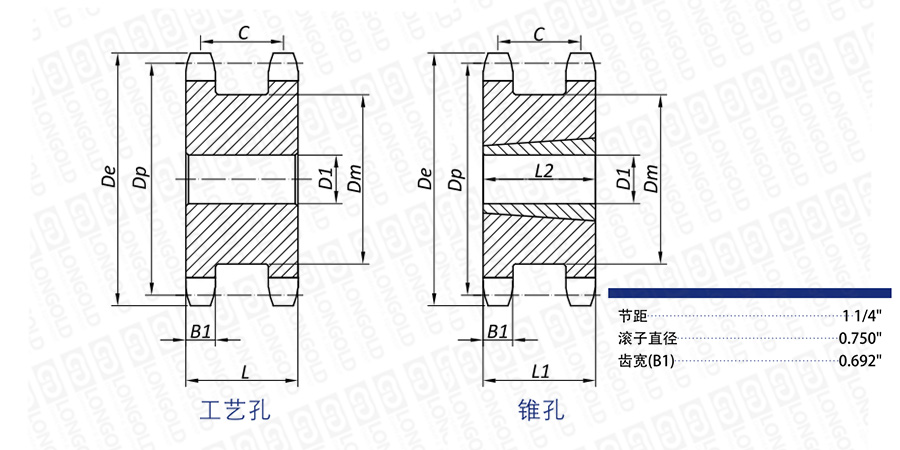 注:帶錐孔雙驅(qū)動鏈輪的參考重量僅為鏈輪重量,不包含錐套重量。