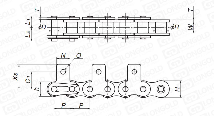 帶SK1附件的滾銷(xiāo)齒輪鏈條