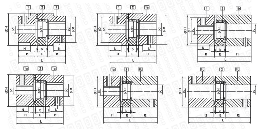 注:1.GE聯(lián)軸器廠標(biāo)產(chǎn)品出廠狀態(tài)為第一種本體型式工藝孔,膠墊硬度SHA92。