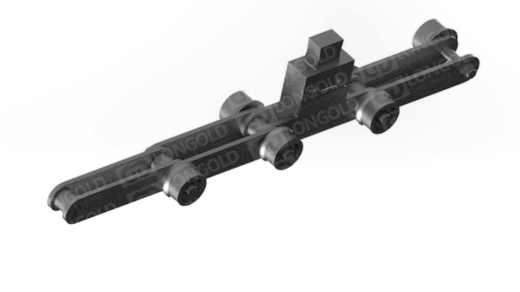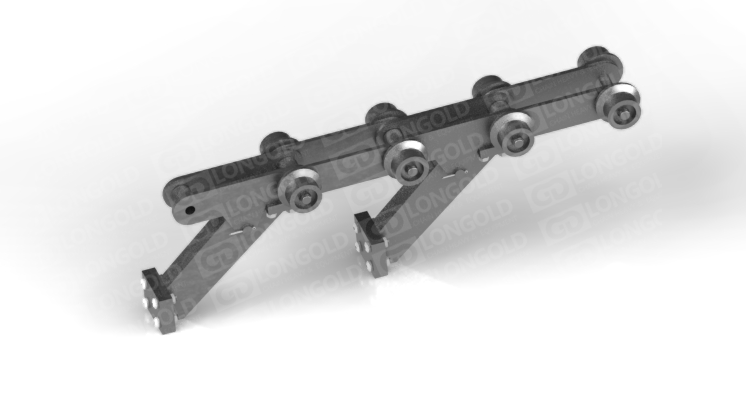 帶側(cè)置滾輪的汽車汽車生產(chǎn)線鏈條,側(cè)置滾輪能減少鏈條運(yùn)動(dòng)時(shí)的摩擦阻力,使鏈條能夠更加順暢地在軌道上運(yùn)行。