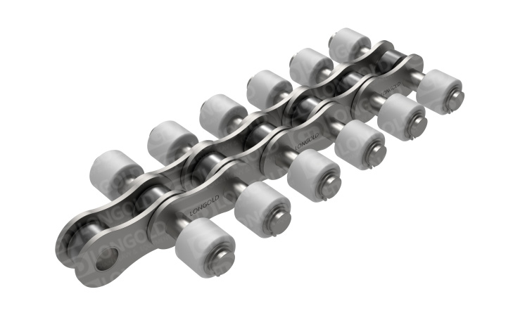 支盒機(jī)支盒成品輸送鏈?zhǔn)且环N特殊設(shè)計的輸送鏈條,它在鏈條的兩側(cè)都裝有塑料滾輪,這些滾輪可以減少摩擦,提高輸送效率,并且降低噪音。