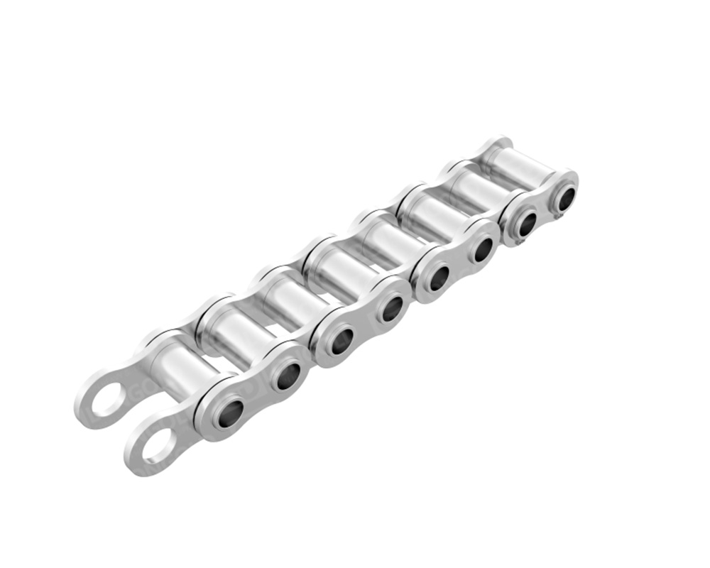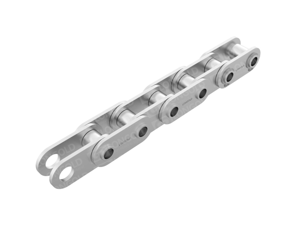 不銹鋼空心銷軸鏈條是一種特殊設(shè)計(jì)的鏈條,其特點(diǎn)是銷軸內(nèi)部是空心的,可以用來安裝各種類型的附件,如附件軸、橫桿等,以實(shí)現(xiàn)物料的提升和運(yùn)輸。