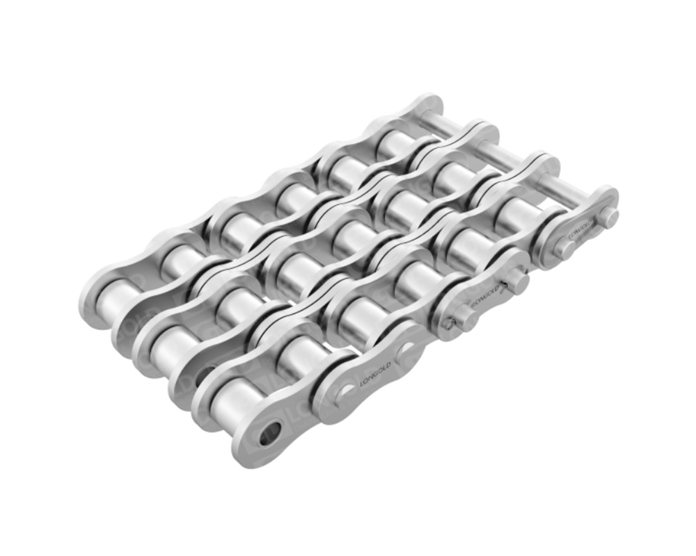 通常采用相當(dāng)于SUS304的不銹鋼材質(zhì),具有較高的耐腐蝕性,適用于水中、酸性、堿性或低高溫度(-20°C~400°C)的特殊環(huán)境下使用 。鏈條符合ISO606標(biāo)準(zhǔn),鏈條列數(shù)為3列。