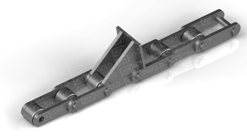依靠鏈板底部底座附帶的折彎板上的孔將鏈條固定,能防止鏈條在運輸過程中出現(xiàn)抖動蛇形等情況,同時鏈板為直板型,方便鋼材的放置和運輸。