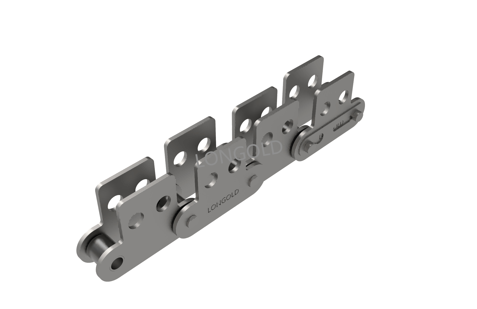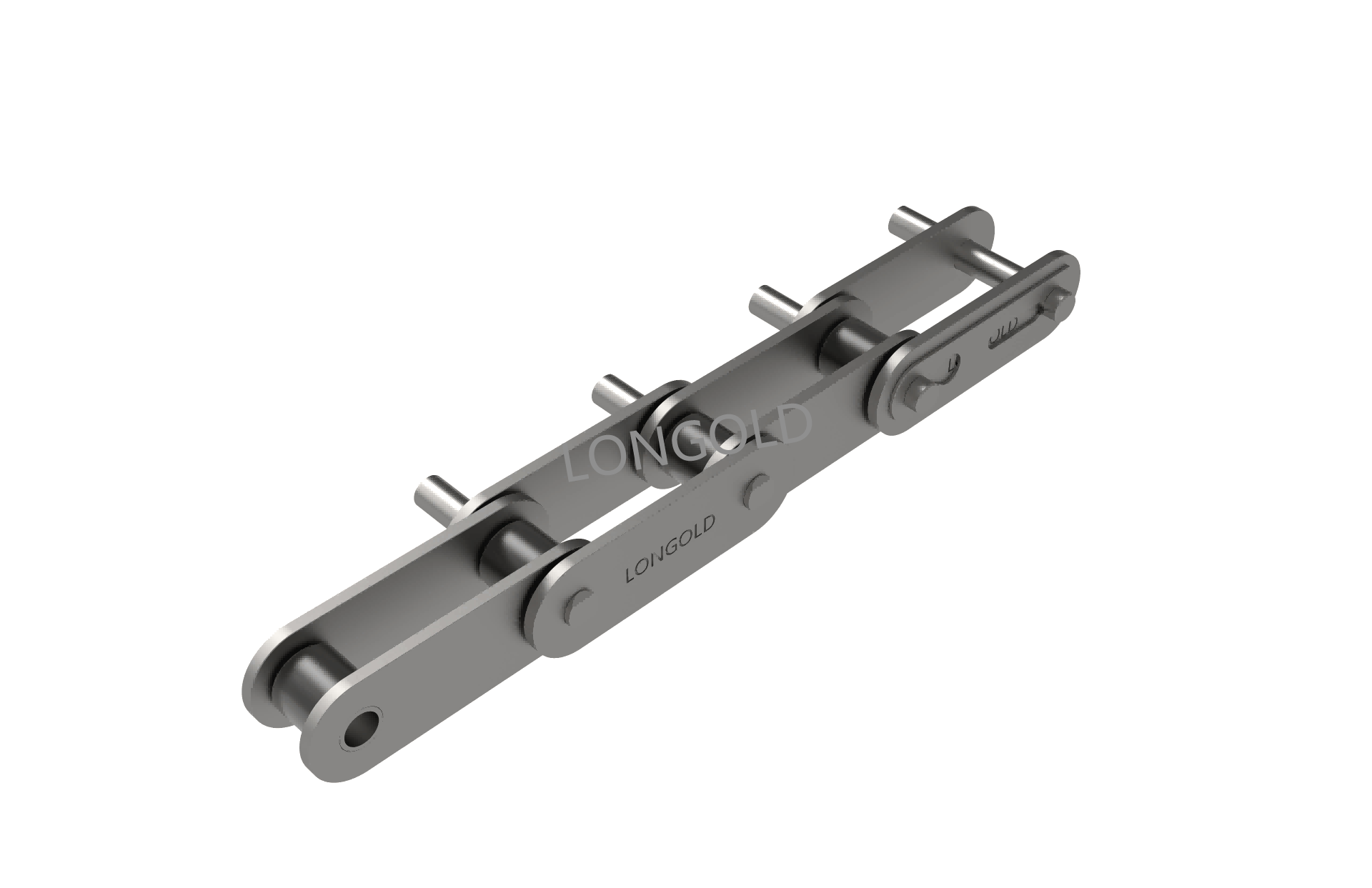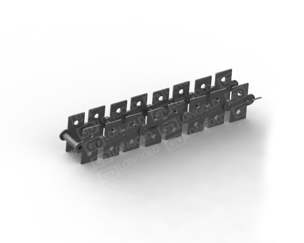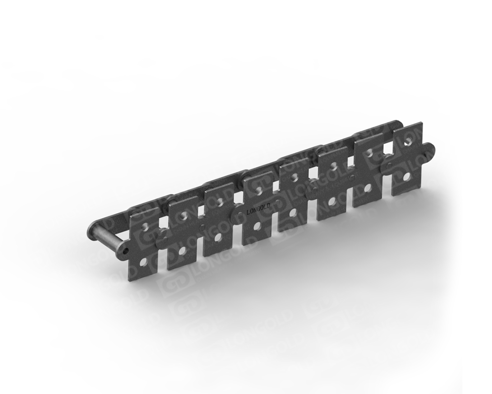 ANSI標(biāo)準(zhǔn)滾子鏈條的節(jié)距增加一倍,其他尺寸不變的鏈條。鏈條執(zhí)行ISO標(biāo)準(zhǔn),鏈條單側(cè)鏈板向上下兩側(cè)延伸,且延伸的附板上帶有1個(gè)孔。