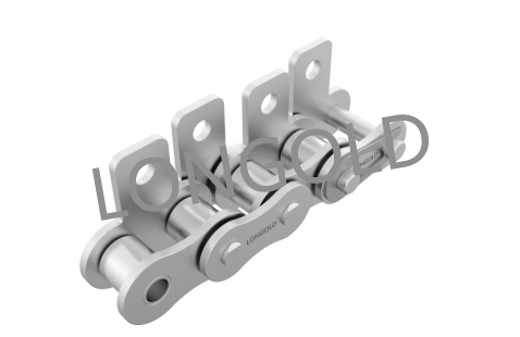 銷子和套筒之間插入特殊工程塑料制襯套,不論在干燥的環(huán)境還是淋水環(huán)境、甚至在水中也可不加油并長(zhǎng)壽命使用的帶K1附件的A系列不銹鋼小型輸送鏈條。在作業(yè)工序中用水較多的食品、衛(wèi)生及醫(yī)藥、包裝等行業(yè)中,有著廣泛的應(yīng)用。